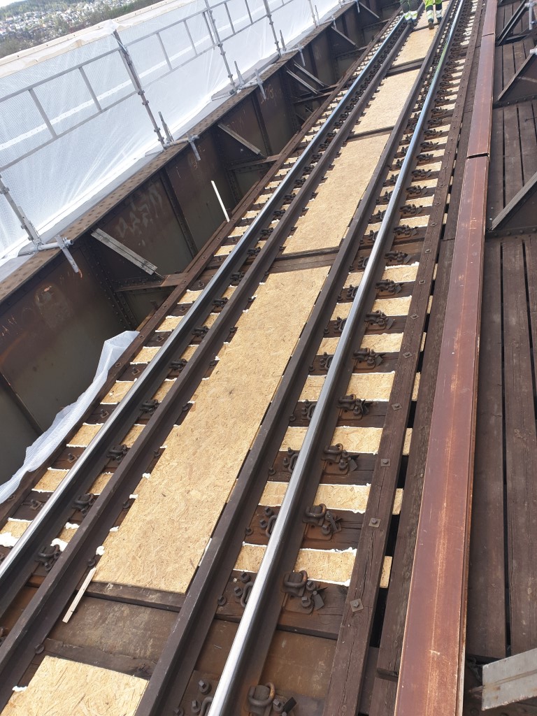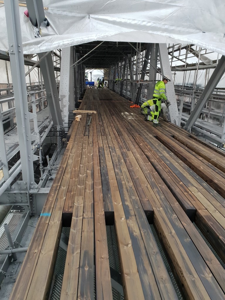 Stillas, inndekking, overflatebehandling, rekkverk sikkerhetspersonell, nye gangbaner og kabelkanaler.